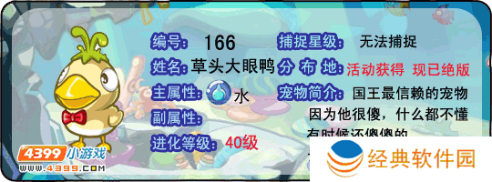 草头大眼鸭在获得后,还可以通过自然进化的方式变为刺头哭眼鸭,为玩家的宠物阵容增添更多选择。