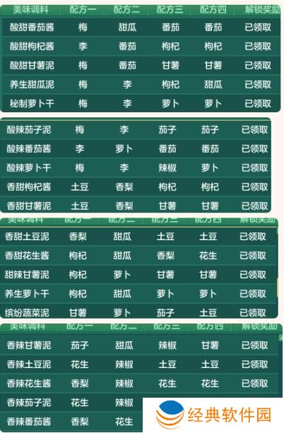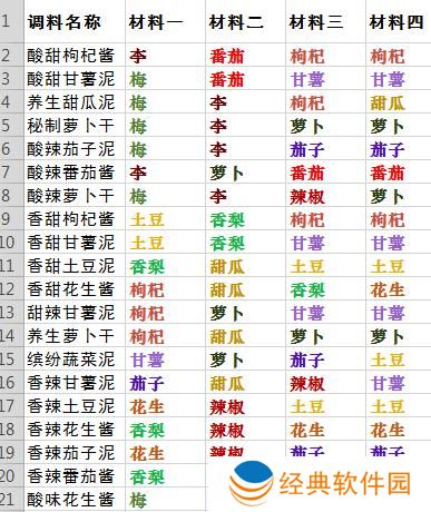 酸甜枸杞酱:由李、番茄、枸杞各两个制作而成,这个搭配特别容易出高品质(如70品质+)的烧烤,尤其适合搭配羊肉。