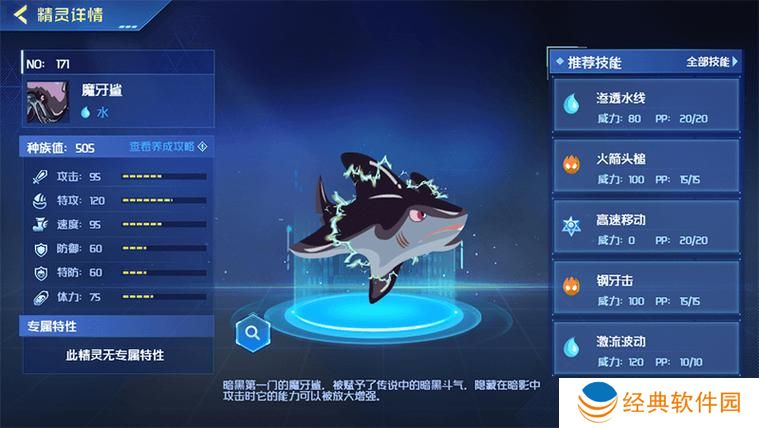 魔牙鲨作为游戏中的高级精灵,其挑战难度可能较高。玩家在挑战前需要充分准备,包括选择合适的精灵搭配、提升精灵的等级和技能等。