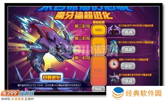 游戏中会定期举办各种活动,玩家可以通过参与这些活动来收集特定的道具或能量,当收集满一定数量后,即可兑换或进化为魔牙鲨或其超进化形态。