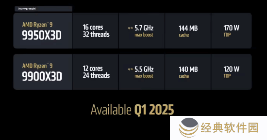 相较于锐龙9 9950X3D,锐龙9 9900X3D则以12核24线程的设计,提供了更为均衡的性能表现。其最高加速时钟频率达到了5.5GHz,总缓存为140MB,包括128MB的三级缓存和12MB的二级缓存,TDP为120W。虽然定位略有不同,但锐龙9 9900X3D同样能够为用户带来卓越的性能体验,并计划于2025年第四季度上市。