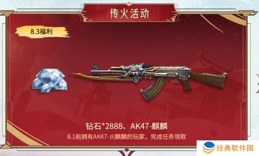 穿越火线官方会定期举办各种活动,包括节日庆典、周年庆典等,这些活动中往往会赠送稀有武器或提供抽奖机会。玩家可以通过参与这些活动来增加获得火麒麟等稀有武器的可能性。