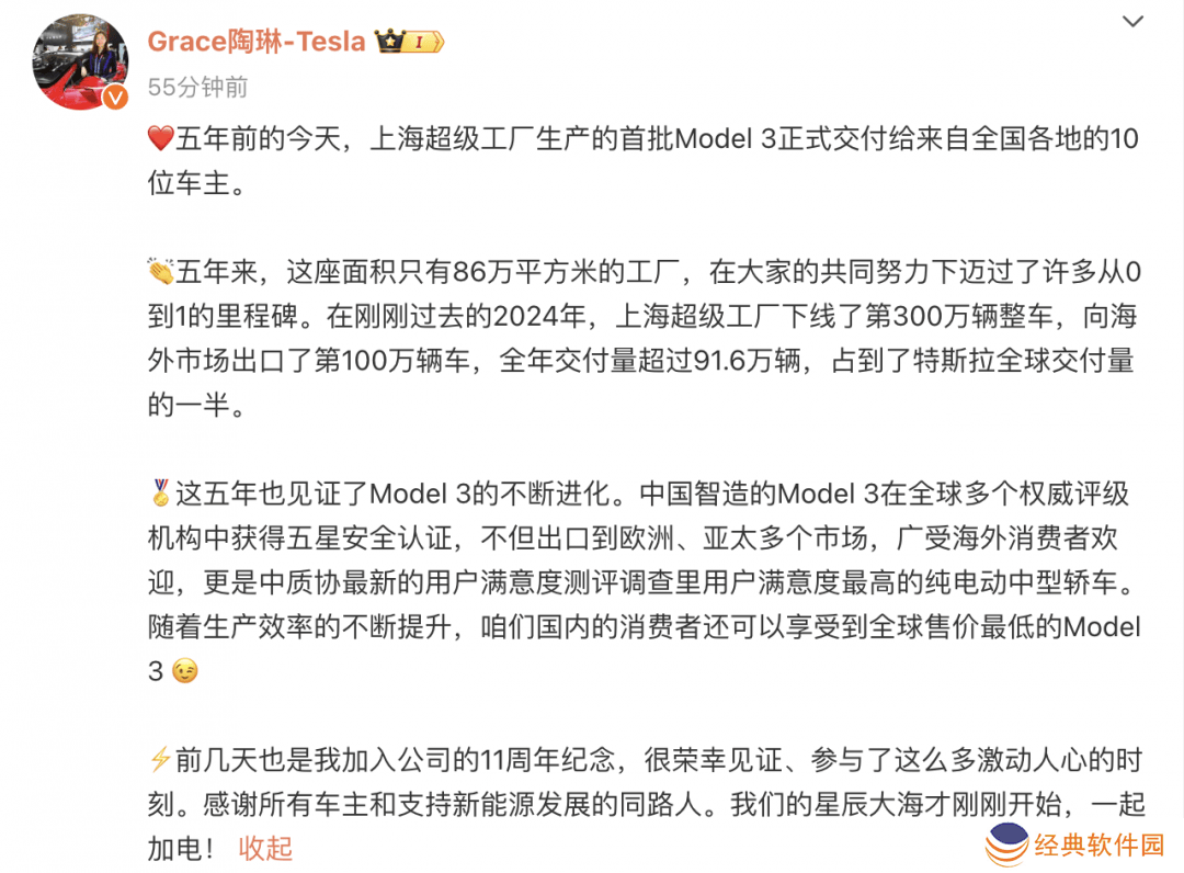 特斯拉上海超级工厂迎来了辉煌的五年里程碑,这一成就通过特斯拉副总裁陶琳在社交媒体上的分享得以展现。她深情回顾了这座占地仅86万平方米的工厂,如何从一片空地成长为全球汽车制造业的重要一环。