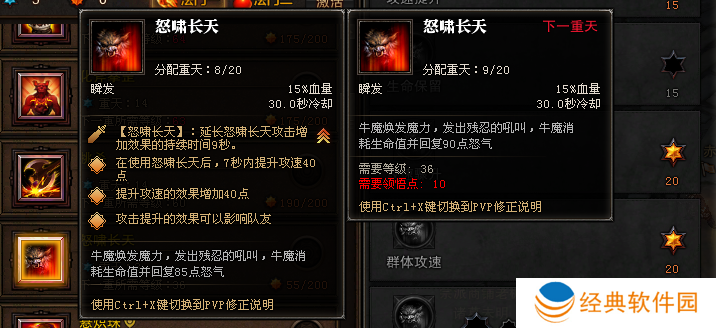 加点建议:重天5重,精修点出攻速提升和攻速骤升。在狂状态下先开启怒啸长天可以显著增加打击频率。