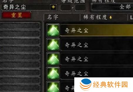 概述:玩家可以通过分解20级以下绿色品质以上的装备来获得奇异之尘。这是一种高效且可持续的获取方式,尤其适合那些喜欢收集装备并进行分解的玩家。