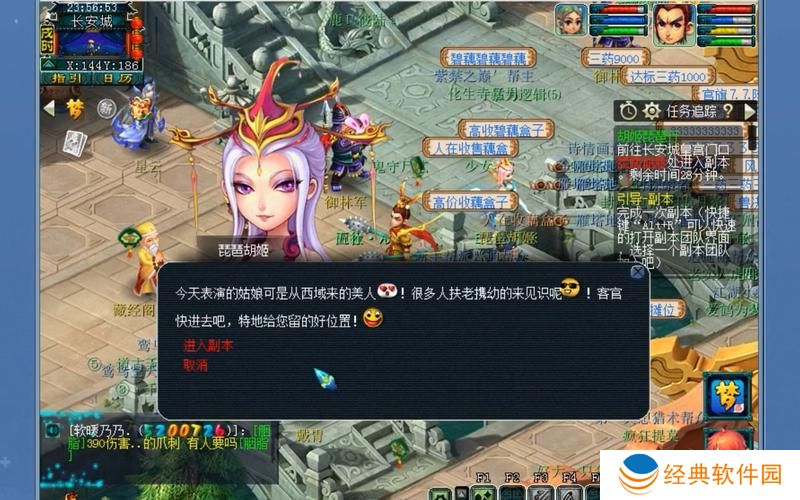 找到琵琶胡姬(位置:长安城150,189;建邺城57,97;傲来国131,109;朱紫国102,80),选择第4个选项进入副本场景“润芳厅”。