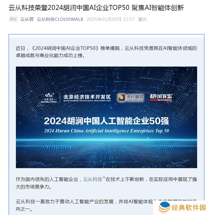 近期,备受瞩目的《2024胡润中国AI企业TOP50》榜单正式揭晓,云从科技凭借在AI智能体领域的出色表现及强大的商业化运作能力,荣耀登榜。