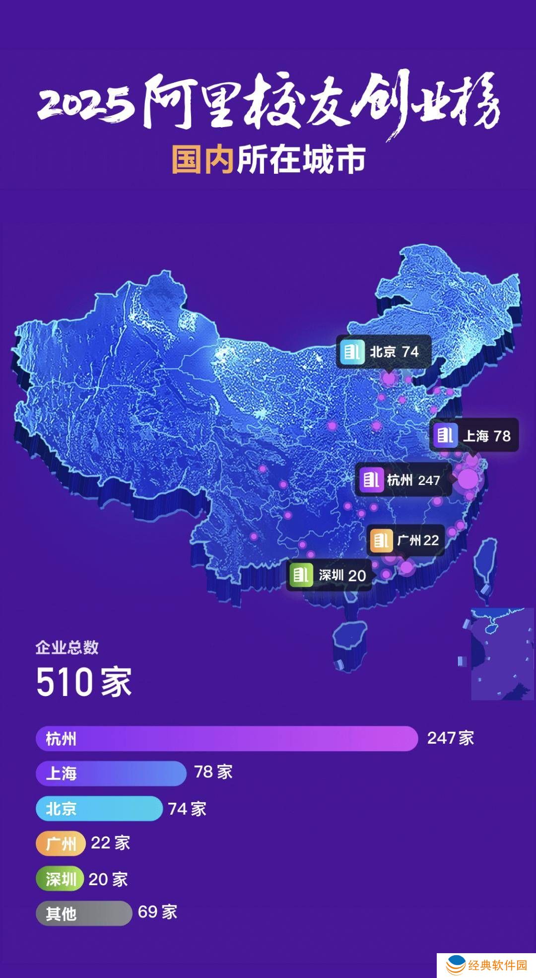 从地域分布来看,杭州作为阿里巴巴的总部所在地,自然成为了阿里校友创业企业的“大本营”。在榜单统计的510家企业中,有247家汇聚于杭城,形成了强大的集群效应。上海、北京、广州、深圳等一线城市也吸引了众多阿里校友落地创业,构建起各具特色的区域创新高地。