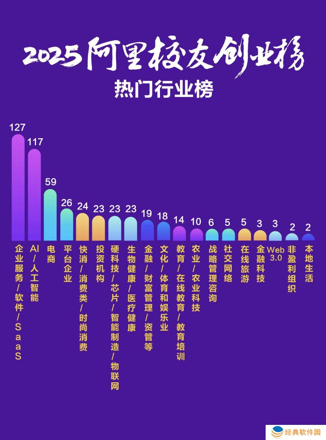 从行业分布来看,企业服务和人工智能成为阿里校友创业的热门方向。在537家创业企业中,有127家专注于企业服务领域,117家则投身于AI领域。随着数字化浪潮的推进,企业对于高效运营和智能化管理的需求日益增强,阿里校友们凭借深厚的技术积累和对市场需求的敏锐洞察,打造出了一系列创新产品,深度赋能企业数字化转型。