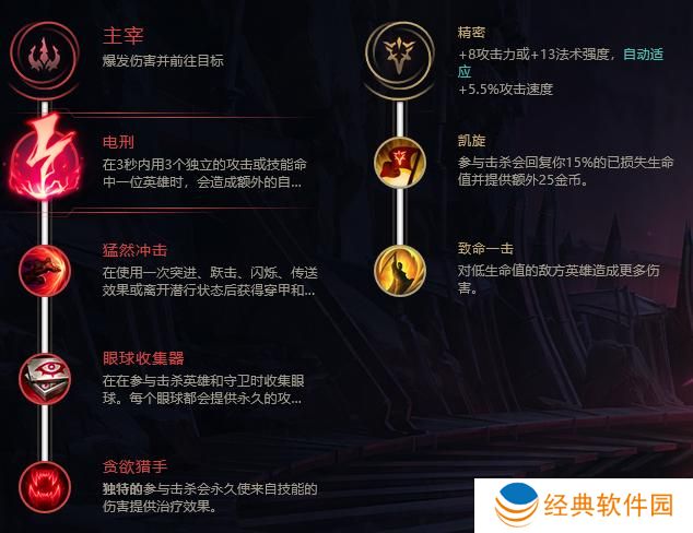 每当近期损害过的一名敌方英雄战败时,卡特琳娜的全部技能冷却时间将减少15秒。