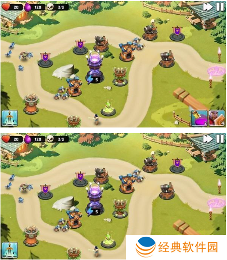 (3)玩家要学会最大化利用地形,尽量选择一个好的合适的位置,尽量做到输出最大化,尤其是在敌人有2条路可走时,把防御炮塔建在2条路的交叉口会好些。
