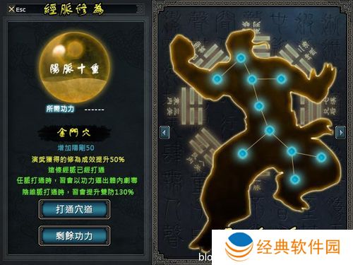 学习基础武功:此时主要武功是范围技能“回风落雁”和补血技能“吐纳法”,内功则使用“内功丹”。