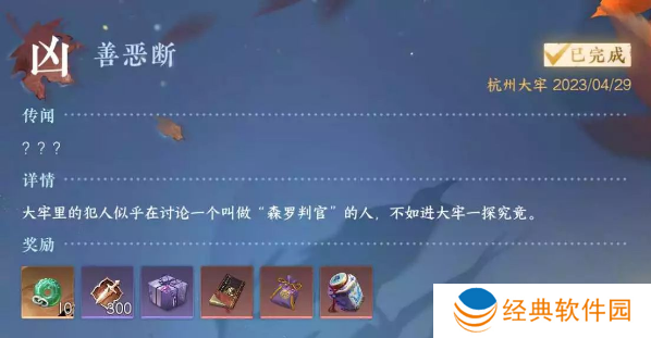 ①任务地点:杭州大牢(只有做坏事了被抓进去才能触发)。