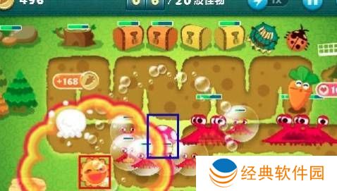 第三步,我们卖掉水晶炮塔后,就可以建玩具飞机炮塔,然后点击左侧的七星瓢虫道具,这样就能轻松消灭掉怪物。