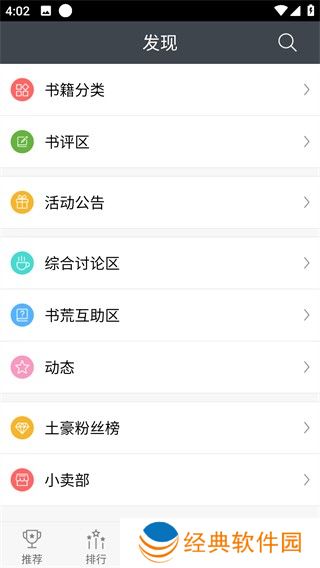 功能介绍1、社区功能的入口在欢乐书客app的发现标签内,下载打开欢乐书客app会进入首页,如图;