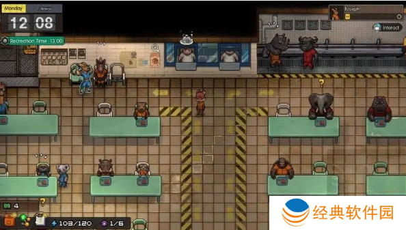 健康需要策略,也需要一些应对“飞来横祸”的方法。在这里,我们遇到的“第一堂课” 是鳄鱼勒索事件——如果你在开局没有选择“战地记者”的话,建议最好还是不要和他硬碰硬,可以在中午的食堂吃顿好的把钱花掉,尽可能减小损失。但注意剩太少还是会惹怒鳄鱼......