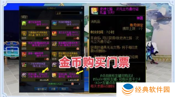 其次,消耗“240万金币”,可购买1张“无限门票(1天)”,账号限购1次,给一个角色无限刷1天,按照1天24次计算,1张门票10万金币,如果再吃“1、5、10、20、50、156”疲劳药刷,成本还要低,疲劳药多的兄弟,可以考虑。