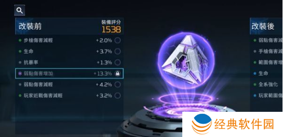 5、护盾核心可以进行改造,玩家可根据需求到达改造工坊进行改装,上面会提示装备评分。