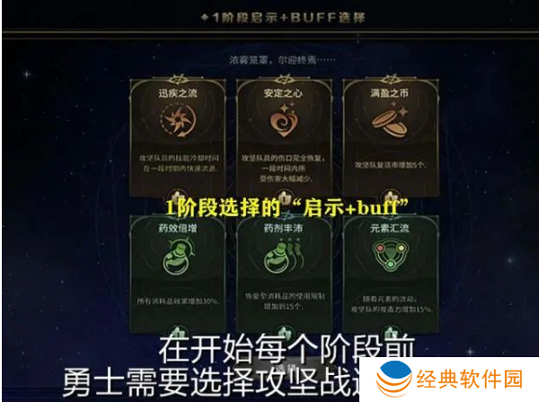 【二阶段】:二阶段开始时,也需要选择“启示+BUFF”,来获取一些增益效果。