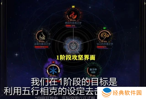 【一阶段】:“雾神”攻坚战,1阶段的目标,是利用五行相克的设定,来击败5只怪物。而5只怪物,也都有各自各样的独特能力与机制,比如有些可以使同伴复活,有些可以赋予增益,有些可以恢复体力等等。