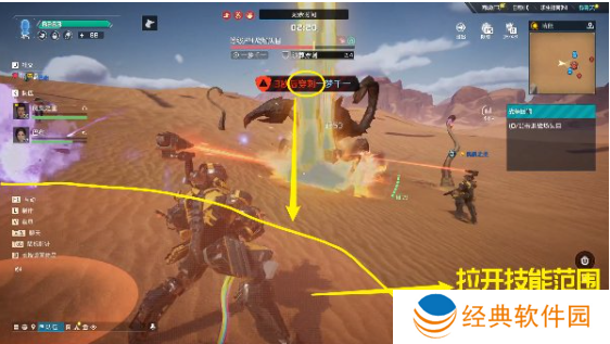 boss尾部使用毒液向前方直线范围攻击敌人,这个技能伤害很大,没有护盾被攻击到会被秒杀。应对方法也是不要离boss太近就可以。