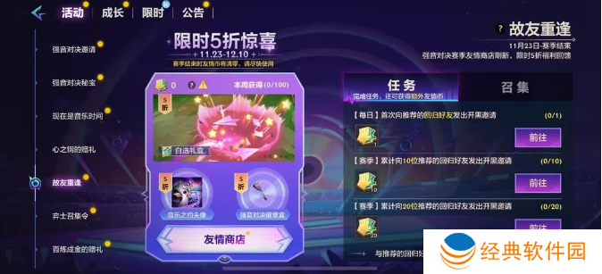 3、【赛季】累计向20位推荐的回归好友发出开黑邀请(20个友情币)