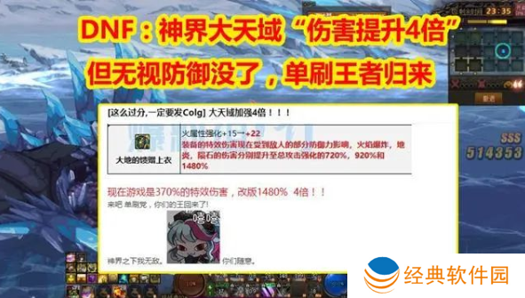 大天域更新带来的4倍伤害提升是一项令人兴奋的改动,让玩家的输出能力大幅度提升。如图所示,现在游戏是370%的特效伤害,改版1480% ,足足提升了 4倍!这意味着在面对强大的敌人和困难的副本时,玩家们能够更迅速地击败他们,对于喜欢单刷的玩家而言是个不错的选择。