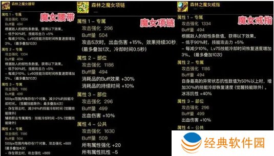 【魔女项链】:消耗品Buff、出血15%、全20、出血10%/单20,3个核心词条可换下“战神项链”。