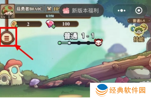 1、小伙伴们进入冒险大作战后,点击大厅左上角的菜单栏按钮。