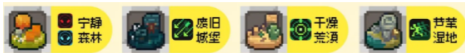 装备:宁静森林、废旧城堡、干燥荒漠、芦苇湿地