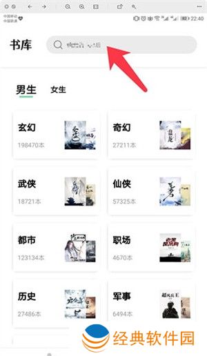 3、在【书库】中,点击上方的【搜索框】。