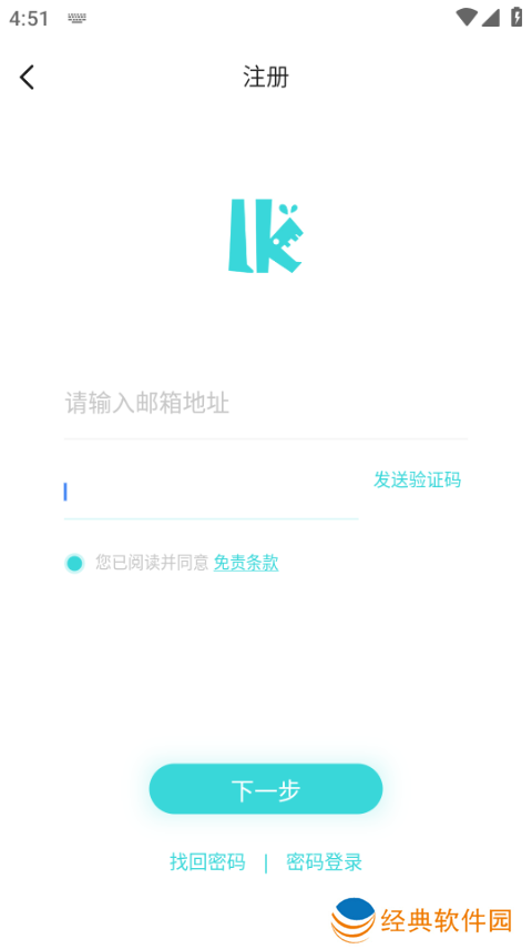 4、输入邮箱地址,点击发送验证码,然后登录这个邮箱的官网接收验证码。填完验证码点击下一步进行账号密码设置即可注册完成。