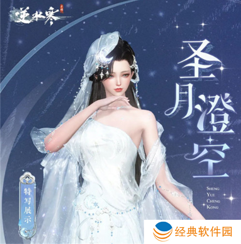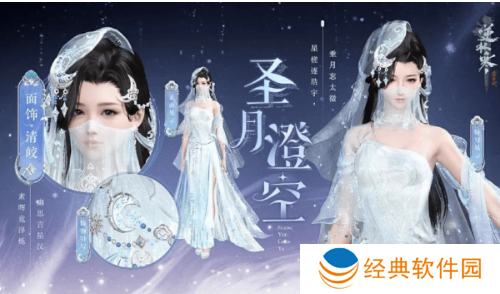 1、圣月主题的时装,女性角色的圣月澄空时装主要以银白色调为主,搭配着纯白头纱给人一种圣洁的感觉。
