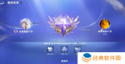 V10贵族新增的【传承】特效,可以绑定一个好友,被绑定的好友可以获得改V10贵族账户上的英雄、皮肤、星传说使用权,且解锁一个特殊的贵族徽章,简单来说就是被传承者可以共享传承者的英雄和皮肤了,也就是充v10就可以赠送一个v10。