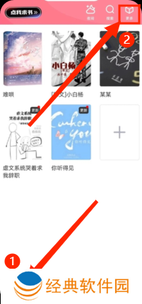 2、点击右上角更多,出现选框,点击书源管理