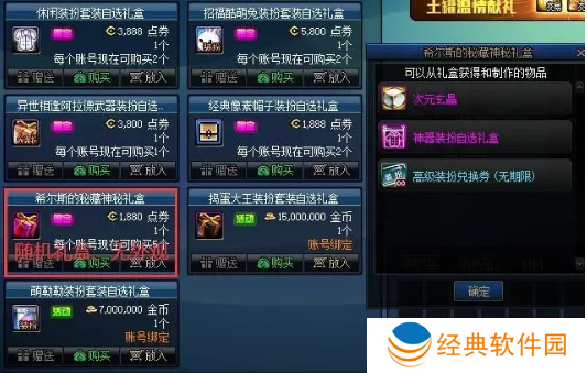 【3,异世相逢武器装扮】售价3800点券,每个账号可购买1次,打开礼盒可获得1个武器装扮,弓箭手无法开启。
