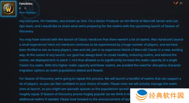 暴雪还宣布《魔兽世界:经典服》推出“探索赛季”,其中将包括一些全新的功能,将改变游戏的玩法,将于11 月 30 日启动。