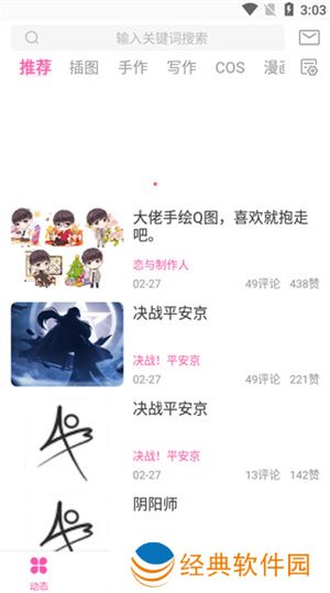 2、进入软件首页,可以看到有各种游戏的插图、手作、写作等;