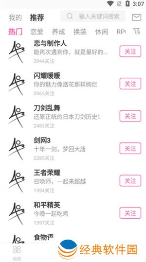 4、点击圈子,有王者荣耀、和平精英、闪耀暖暖等热门手游的游戏圈,用户可以关注并和其他用户一起交流。