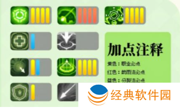 根据下图中:黄色是职业必点、红色是箭雨流必点、蓝色分裂流必点、无图标无需点。
