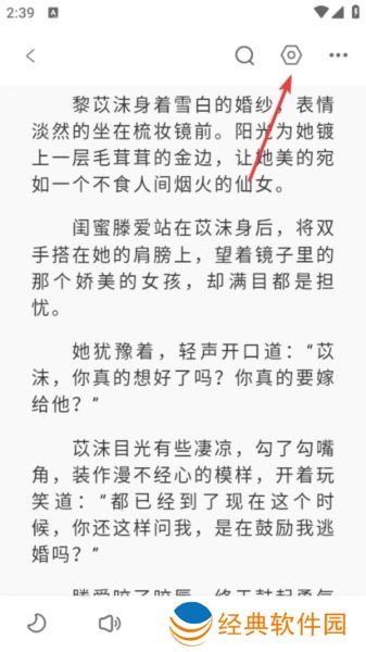 东南小说怎么设置翻页模式1、首先我们在这里打开小说进行阅读,然后点击右上角的设置功能。