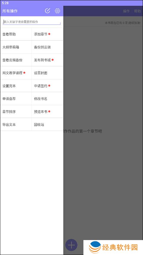 3、进入详细界面,会弹出操作面板,会看到有很多操作项,添加章节、发布、修改书名简介、设置封面等各种操作都可以在这里找到。