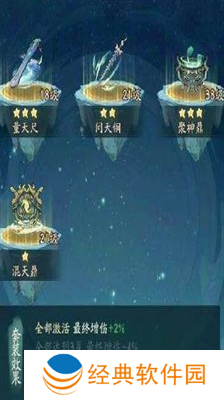 神通箱子中性价比高点就是碎心法和蚀魂咒,直接就可以上最终增伤和最终减伤了,紫色神通里面的护体金光弄到二阶,就可以搞紫色羁绊的最终减伤了。