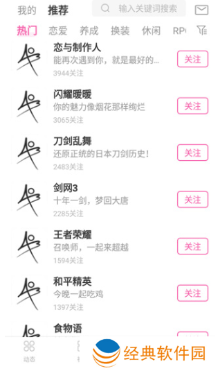 点击圈子,有王者荣耀、和平精英、闪耀暖暖等热门手游的游戏圈,用户可以关注并和其他用户一起交流。
