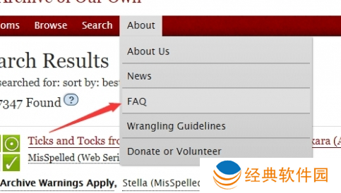 1、首先,先将ao3打开,然后在其主界面点击左上角的About。