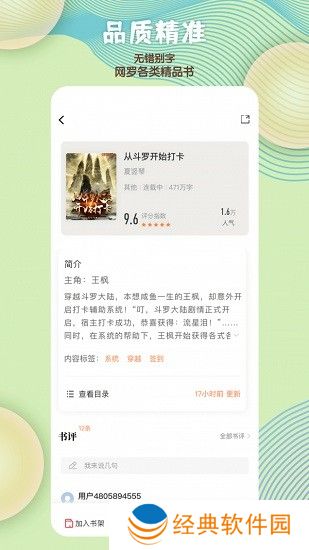 2.无广告:完全无广告展示,为用户提供纯净的阅读环境。该软件可以给用户带来身临其境的小说阅读体验;