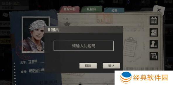 3、领取方法:进入游戏后完成新手指引,然后点击左上角图标打开个人信息界面,选择【礼包码-输入兑换码】,验证完成后即可获得奖励,需要通过邮件收取。