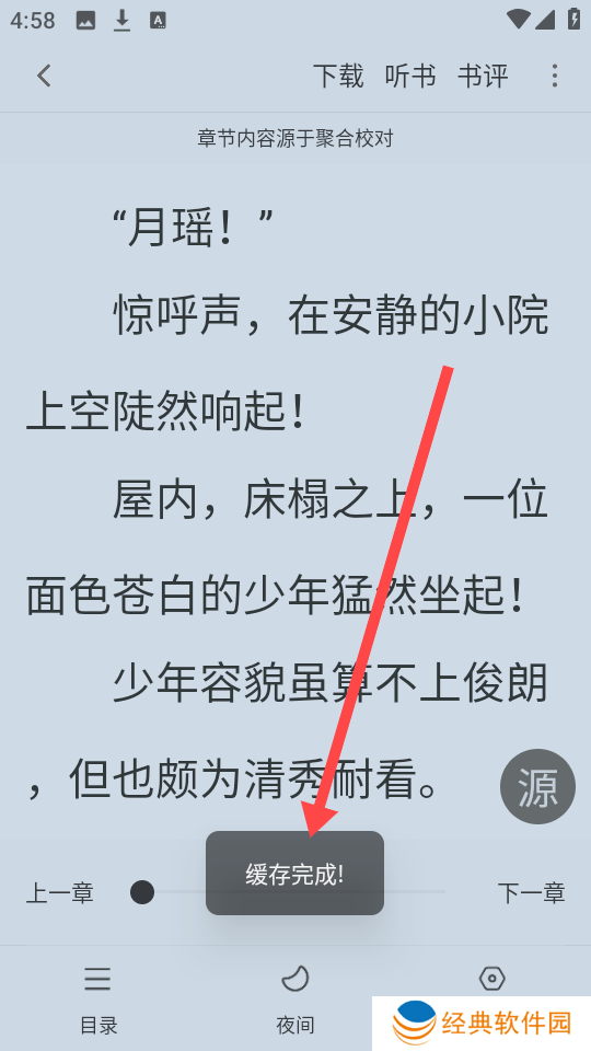2、考虑长时间阅读的用眼压力,软件模拟纸质书视觉感受。暖黄底色、适度亮度,犹如在暖光灯下翻阅古籍,熬夜追书也不伤眼。