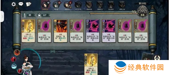 卡牌放的顺序第一张放狂剑二式(为了下一轮攻击的时候,更快造成伤害),中间放狂剑一式(当然有狂剑二式代替狂剑一式更好),狂剑二式放越后面越好能造成的伤害更多(狂剑二式优先把一式换下场,而不是追求先升级二式)