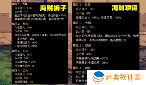 4、【海贼项链】:灼烧15%、灼烧10%、技攻4%范围10%、消耗品Buff30%,神界新增自定义,也不能提前获取。